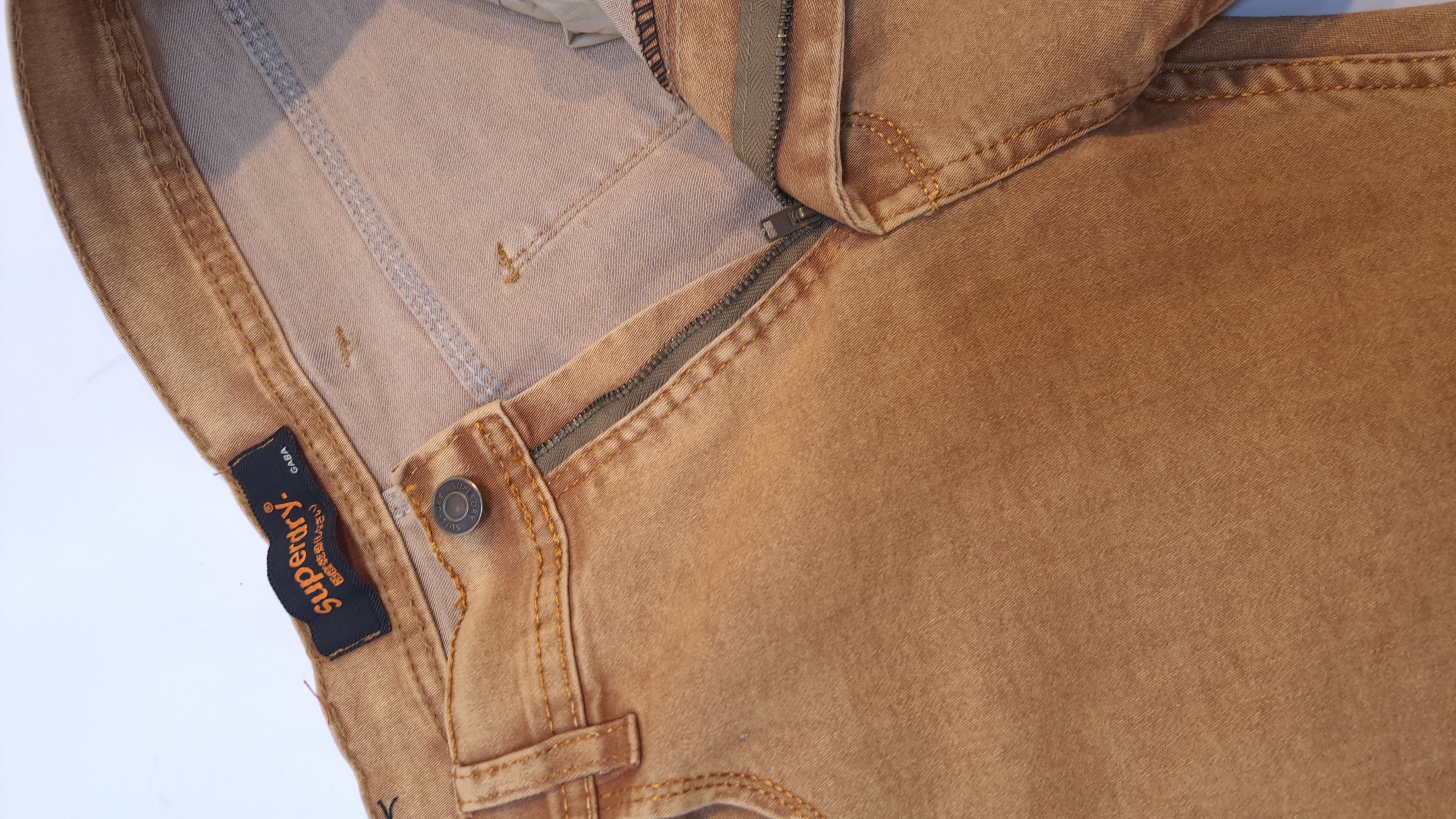 Super dry شلوار کتان سایز لیبل 32 عرض کمر ۴۲ فاق ۳۰ دورران۵۲ دمپا ۱۷ قد ۱۰۰ ۱۰۰٪کتان پارچه کشسانی دارد