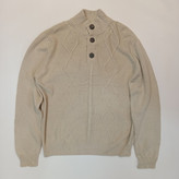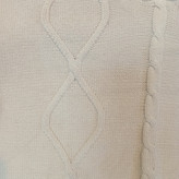 طرح بافت: دارای بافت ضخیم و برجسته کابل (Cable Knit) که شامل نوارهای عمودی و طرحهای لوزی (Diamond Pattern) است. این نوع بافت نشاندهنده کیفیت و دوام بالاست.