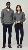 مدل: یقه شالی (Shawl Collar Jumper) با ساختار پهن و برگردان.