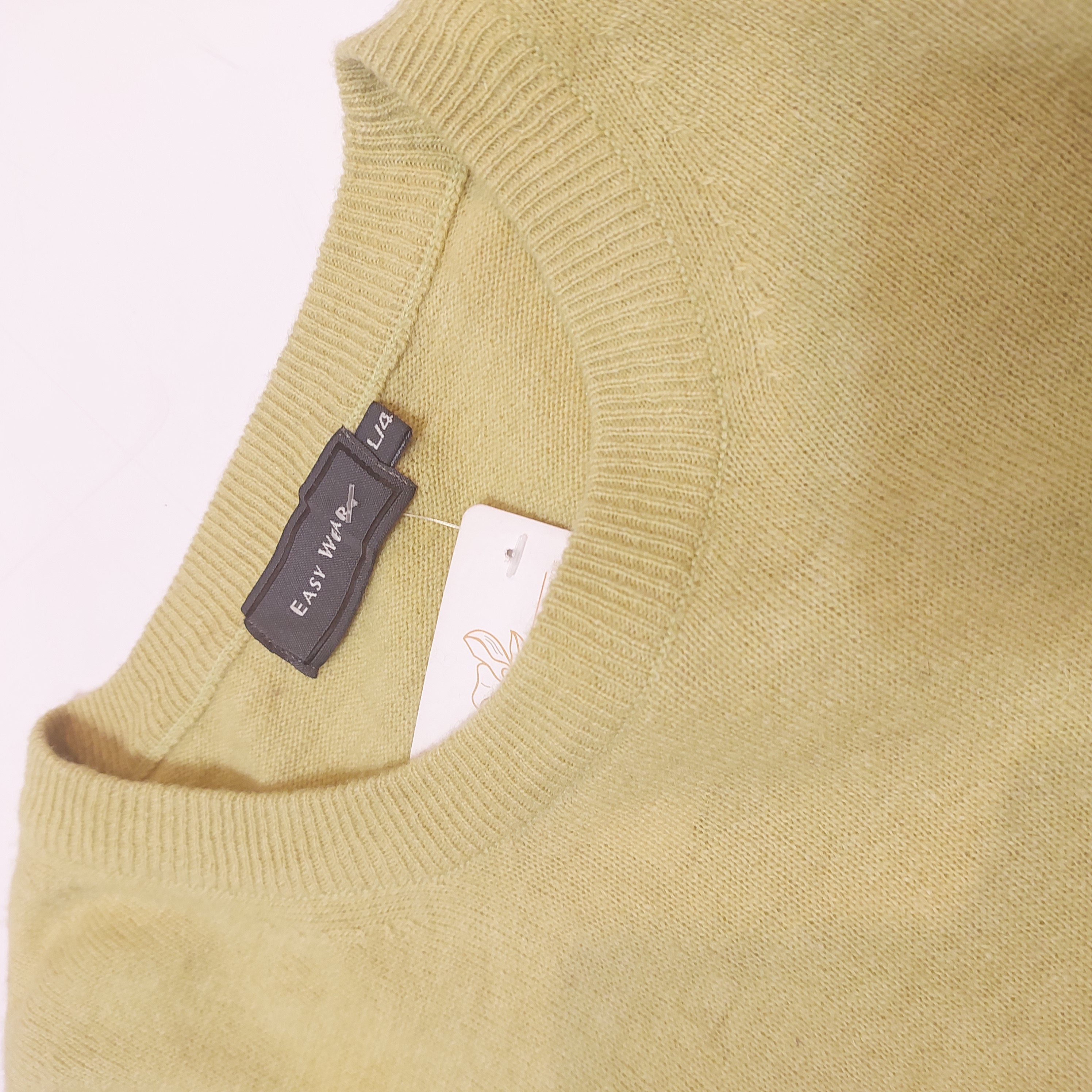 Easy Wear بافت یقه گرد سایز لیبل L عرض شانه ۴۴ عرض سینه ۵۹ آستین ۷۲ قد ۶۸ پشم و پلی استر رنگ معز پسته ای
