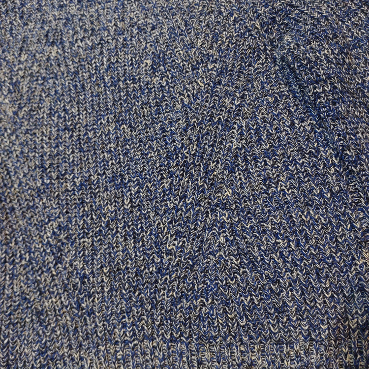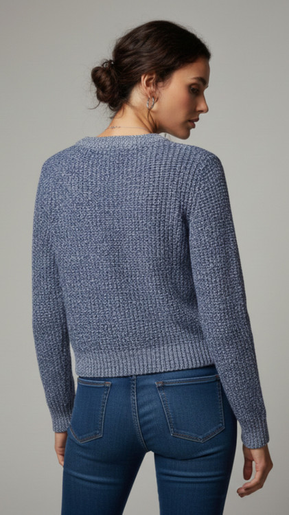 ویژگی بافت: بافت دو رنگ (Melange) ترکیب آبی کلاسیک و سفید که جلوهای بصری مشابه بافتهای دستدوز دارد.