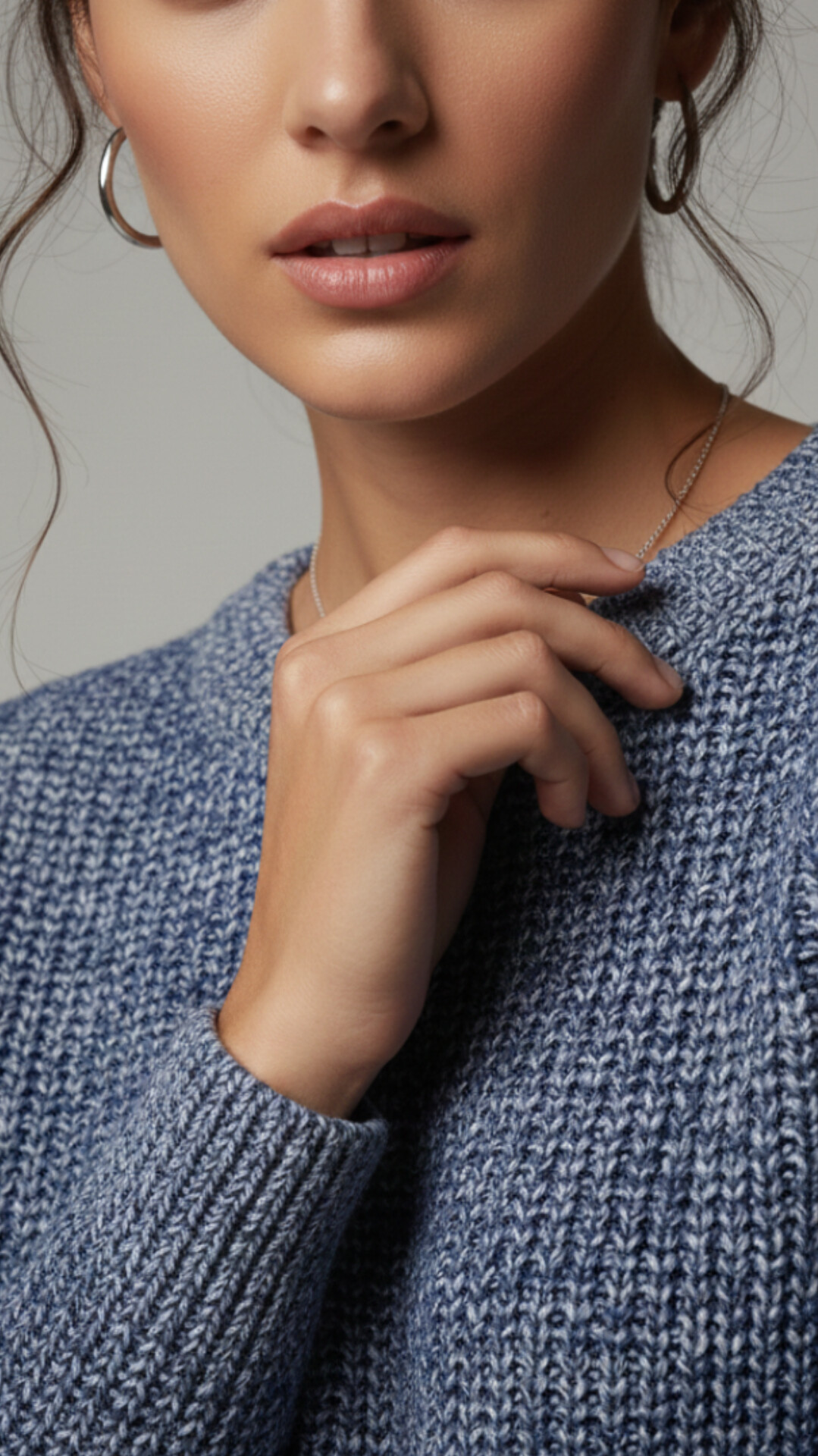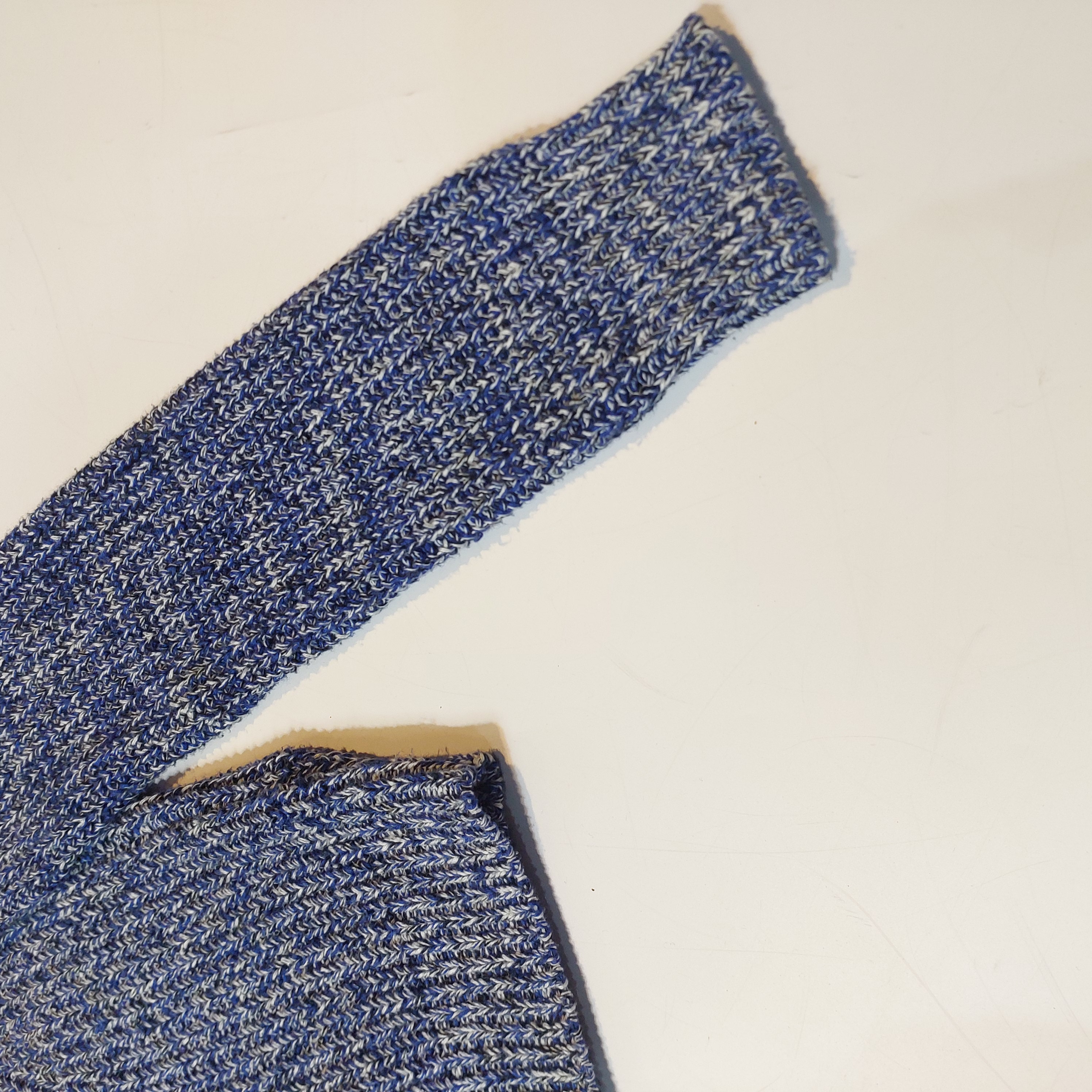 ویژگی بافت: بافت دو رنگ (Melange) ترکیب آبی کلاسیک و سفید که جلوهای بصری مشابه بافتهای دستدوز دارد.