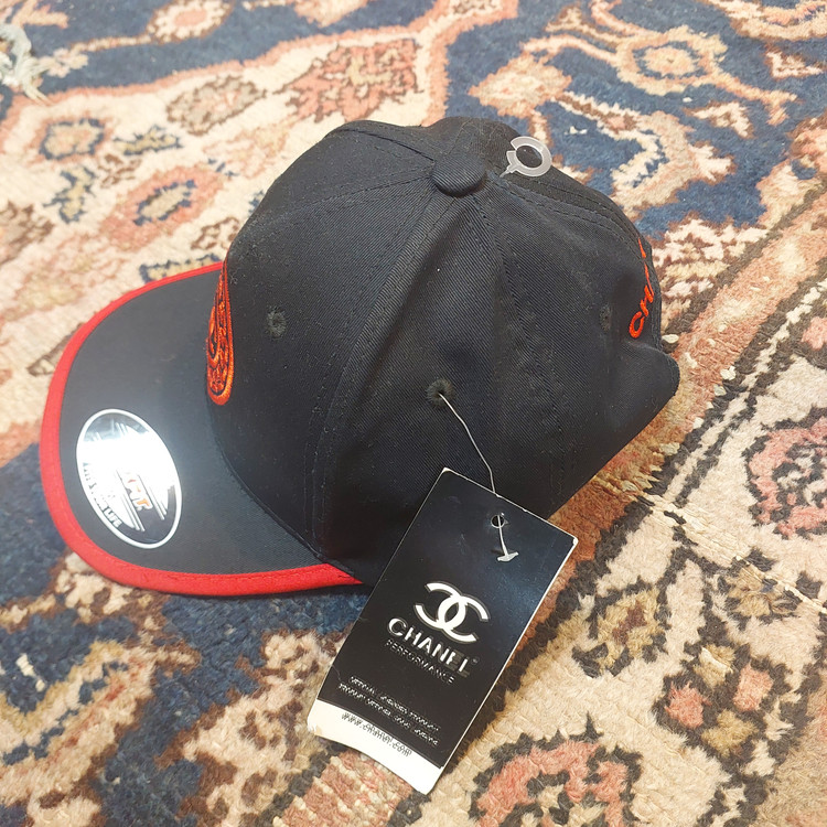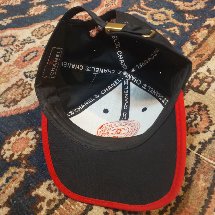 جزئیات پشت کلاه: عبارت CHANEL با دوخت باکیفیت در قسمت بالای دهانه پشت کلاه حک شده است.