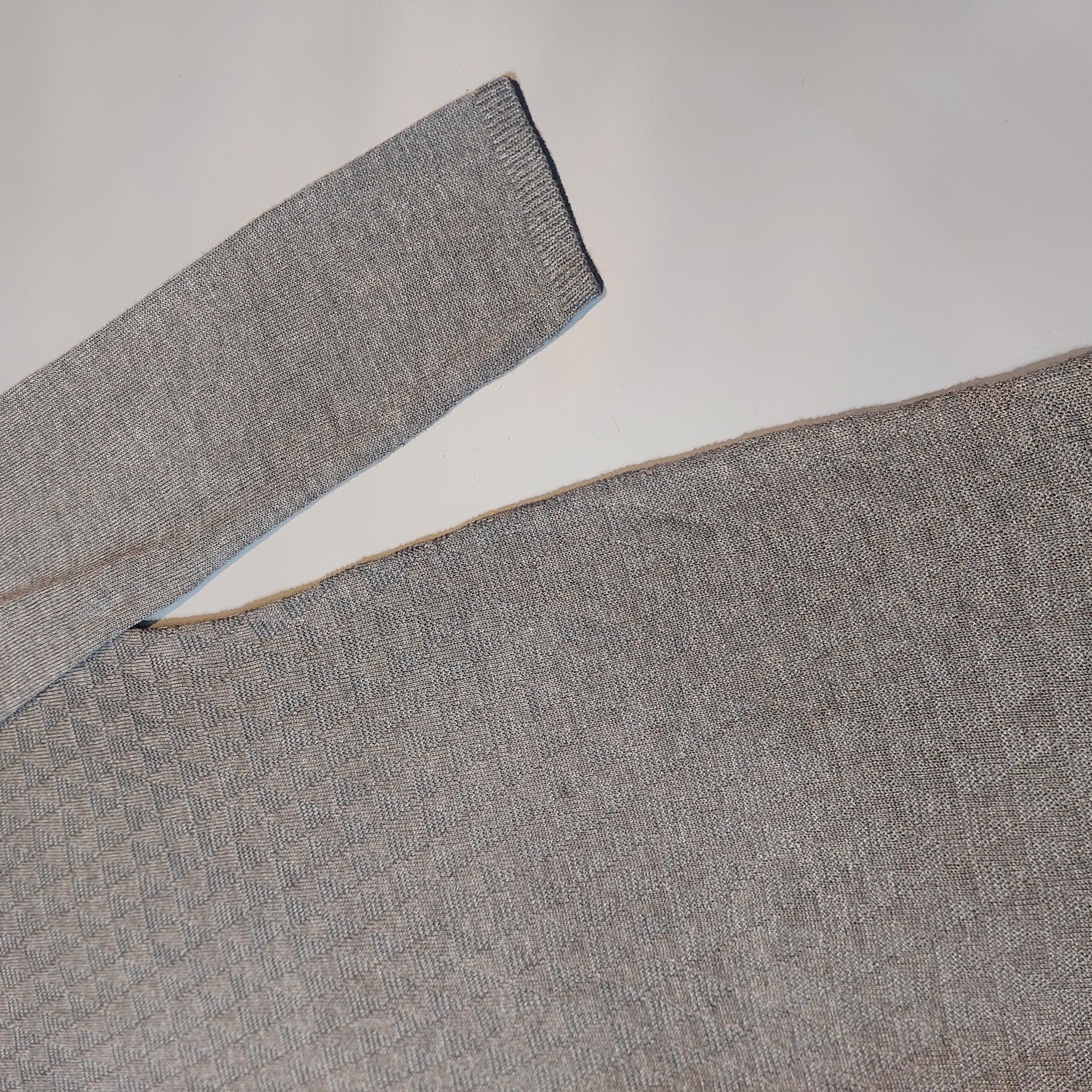 بافت: دارای دو نوع بافت؛ قسمت بالاتنه و سرآستینها دارای طرح ریز هندسی (لوزی) و بدنه دارای بافت ساده و یکدست است.