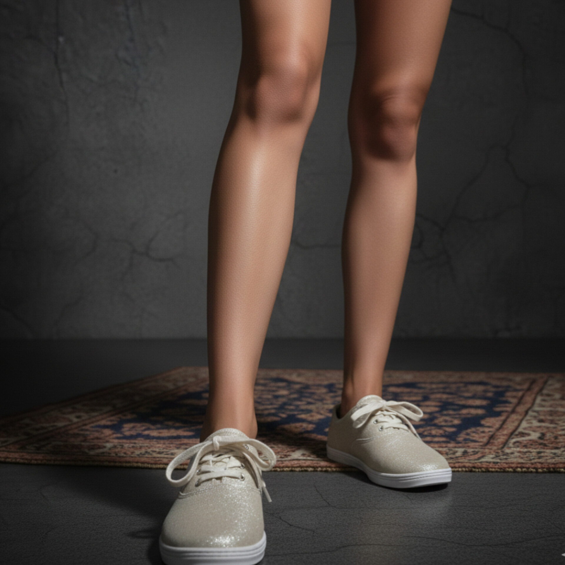 جا بندیهای فلزی طلایی که تضاد زیبایی با رنگ روشن کفش ایجاد کرده است.