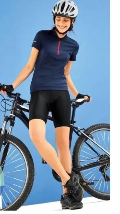 تیشرت دوچرخه سواری زنانه برند کریویت ۳۲۹۲۴۰ (crivit) ساخت کشور از محصولات استوک شرکت لیدل (lidl) میباشد ، جنس غالب شلوارک پلی استر میباشد و حاوی مقدار کمی هم الاستان است، تیشرت در دو رنگ مشکی و سورمه ای بوده و دارای کشسانی کمی است. برند زیپ ykk و قسمت پشت کار دارای شبنما بوده و در قسمت کمر کش مدل چسبی قرار گرفته و مناسب برای ورزش های هوازی مثل دوچرخه سواری و پیاده روی و ورزش های استقامتی می باشد. همچنین متریال کار شده در محصول ۹۵٪ پلی استر و ۵٪ الاستان میباشد.