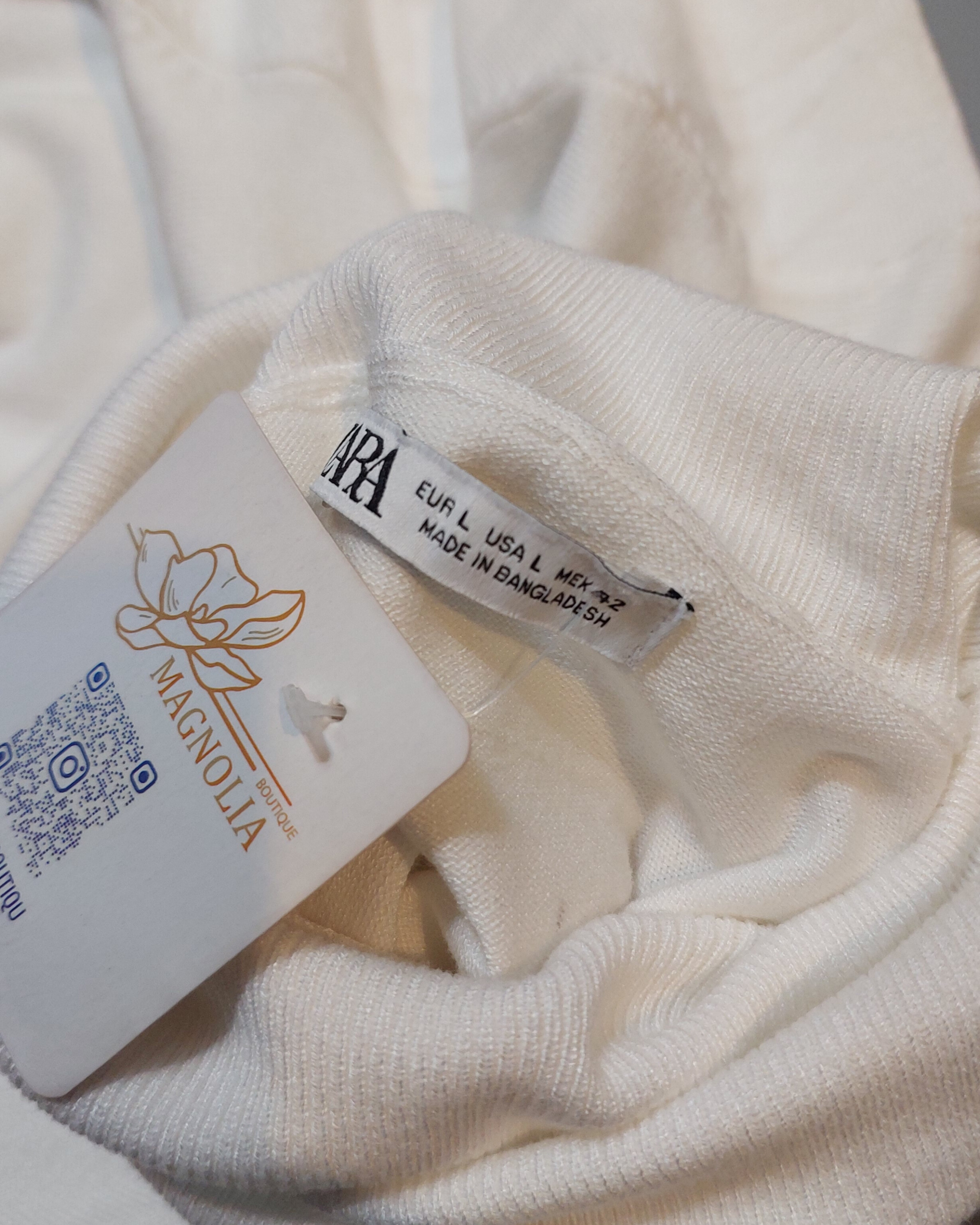 بلوز آستین بلند یقه اسکی کشبافت برند زارا ZARA اسپانیا تولید بنگلادش عرض سینه ۵۸ عرض شانه ۵۲ آستین ۷۰ قد ۷۸ یقه ۱۶ جنس ویسکوز و پلی آمید رنگ سفید