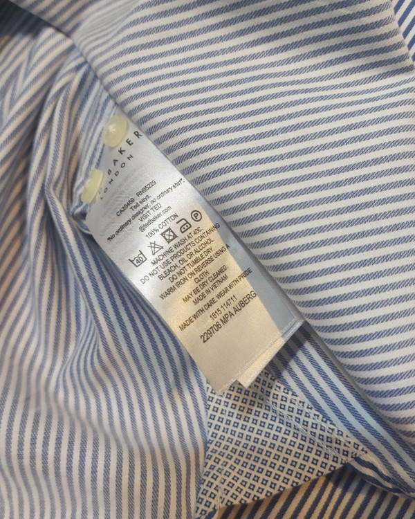 دکمهها: استفاده از دکمههای باکیفیت صدفی با حکاکی نام برند Ted Baker بر روی آنها.