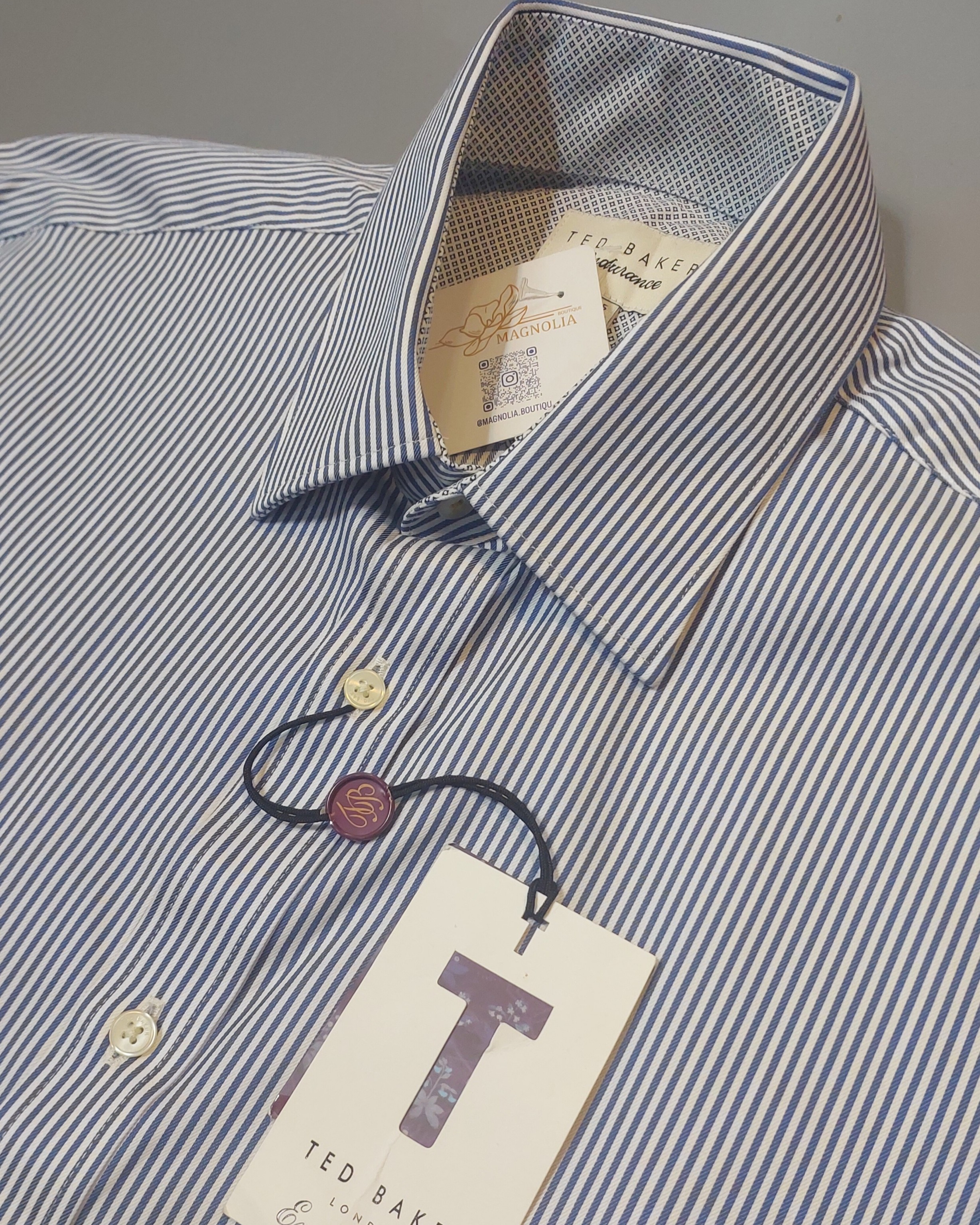 دکمهها: استفاده از دکمههای باکیفیت صدفی با حکاکی نام برند Ted Baker بر روی آنها.