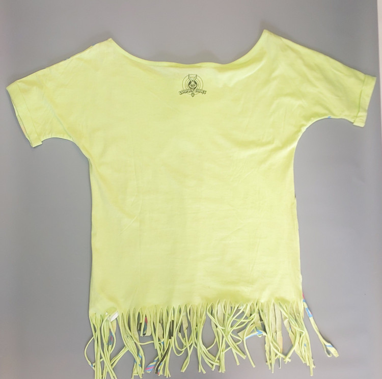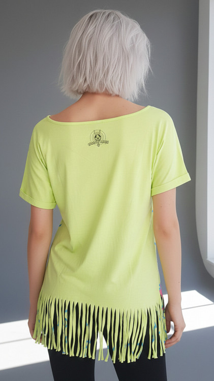 پشت تیشرت: نمای پشت کاملاً ساده و به رنگ سبز فسفری بوده و تنها لوگوی کلاسیک Looney Tunes (بنیخرگوش) در قسمت بالا، زیر یقه چاپ شده است.