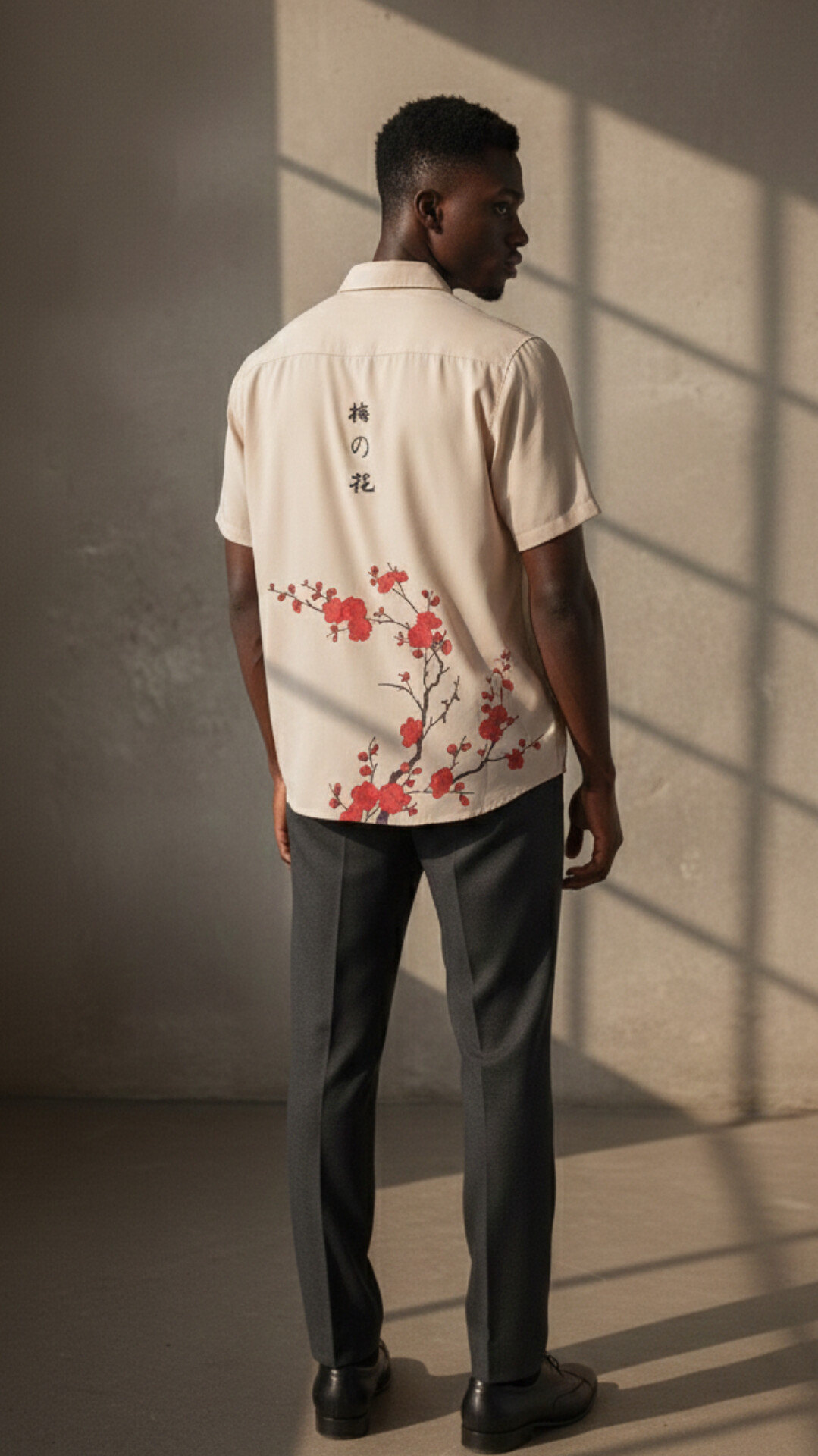 پیراهن مردانه SHEIN طرح شکوفه گیلاس (Plum Blossom)