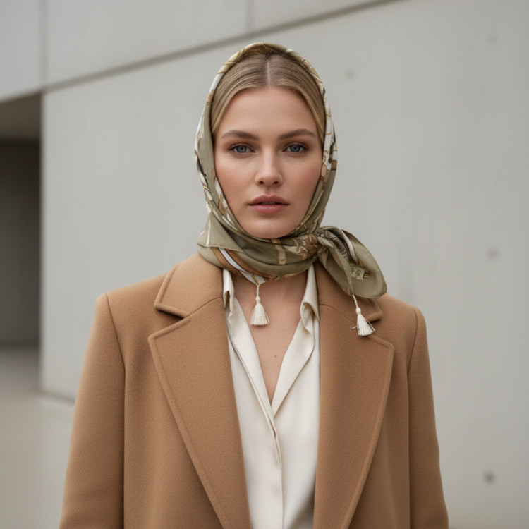 بافت ابریشمی: جنس ابریشم توییل باعث میشود روسری بهخوبی روی سر قرار بگیرد و لیز نخورد.