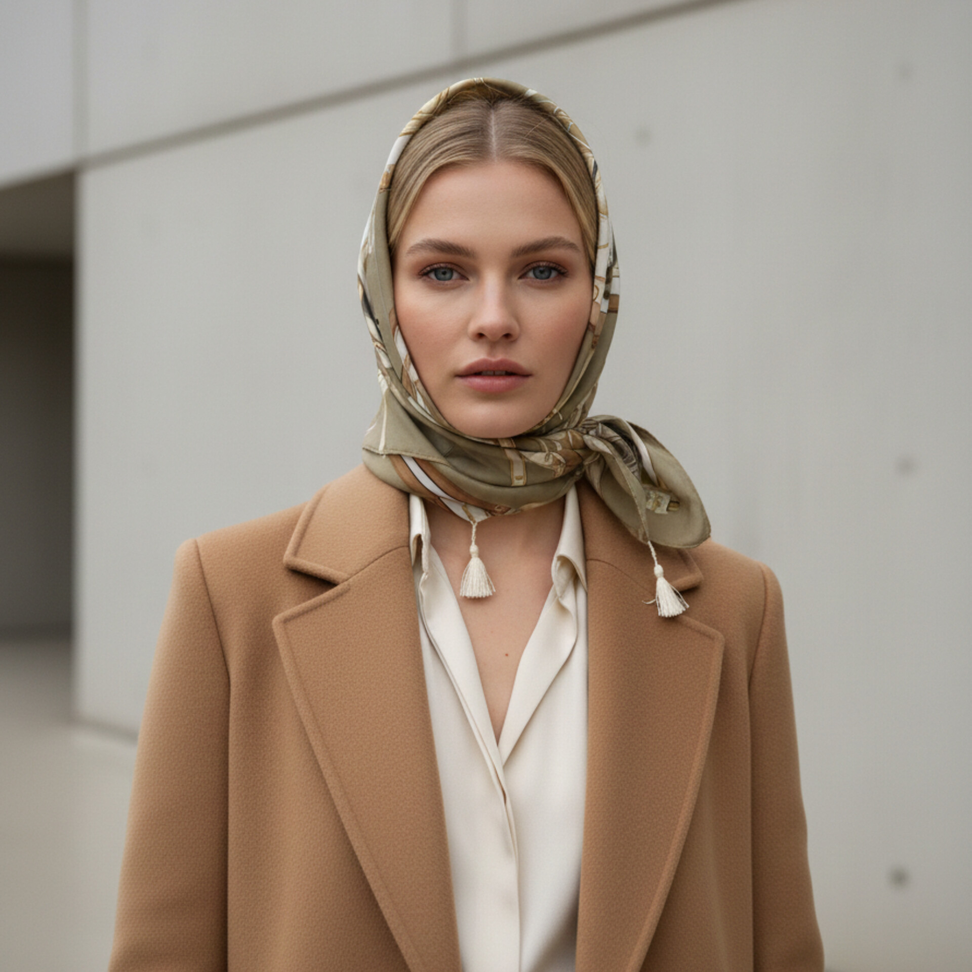 ▪️روسری کلاسیک (بسته شده زیر گلو یا دور گردن).