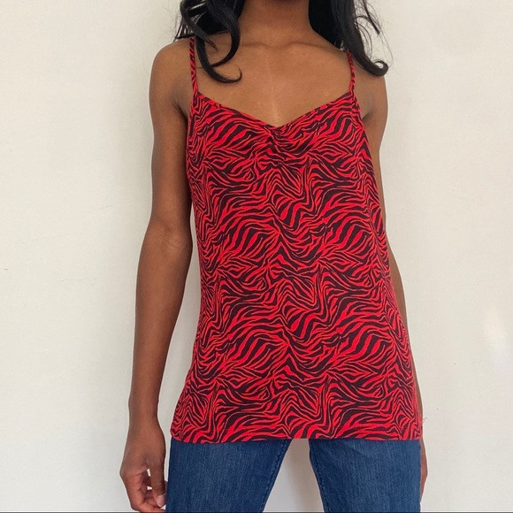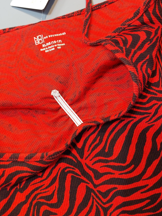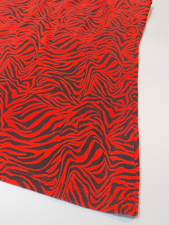 این تاپ جذاب و سبک، انتخابی عالی برای استایلهای کژوال، روزمره و مهمانیهای دوستانه در فصلهای گرم است. طرح زبرا (گورخری) قرمز و مشکی، ظاهری پرانرژی و جسورانه به شما میبخشد.