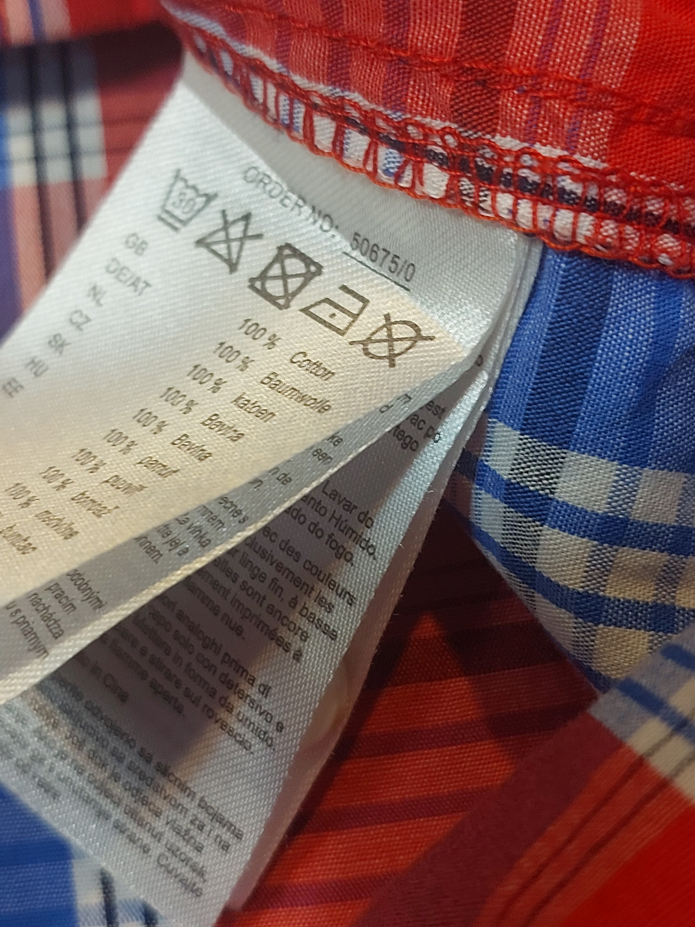 طرح پارچه: چهارخونه (Plaid) با ترکیب رنگهای زنده.