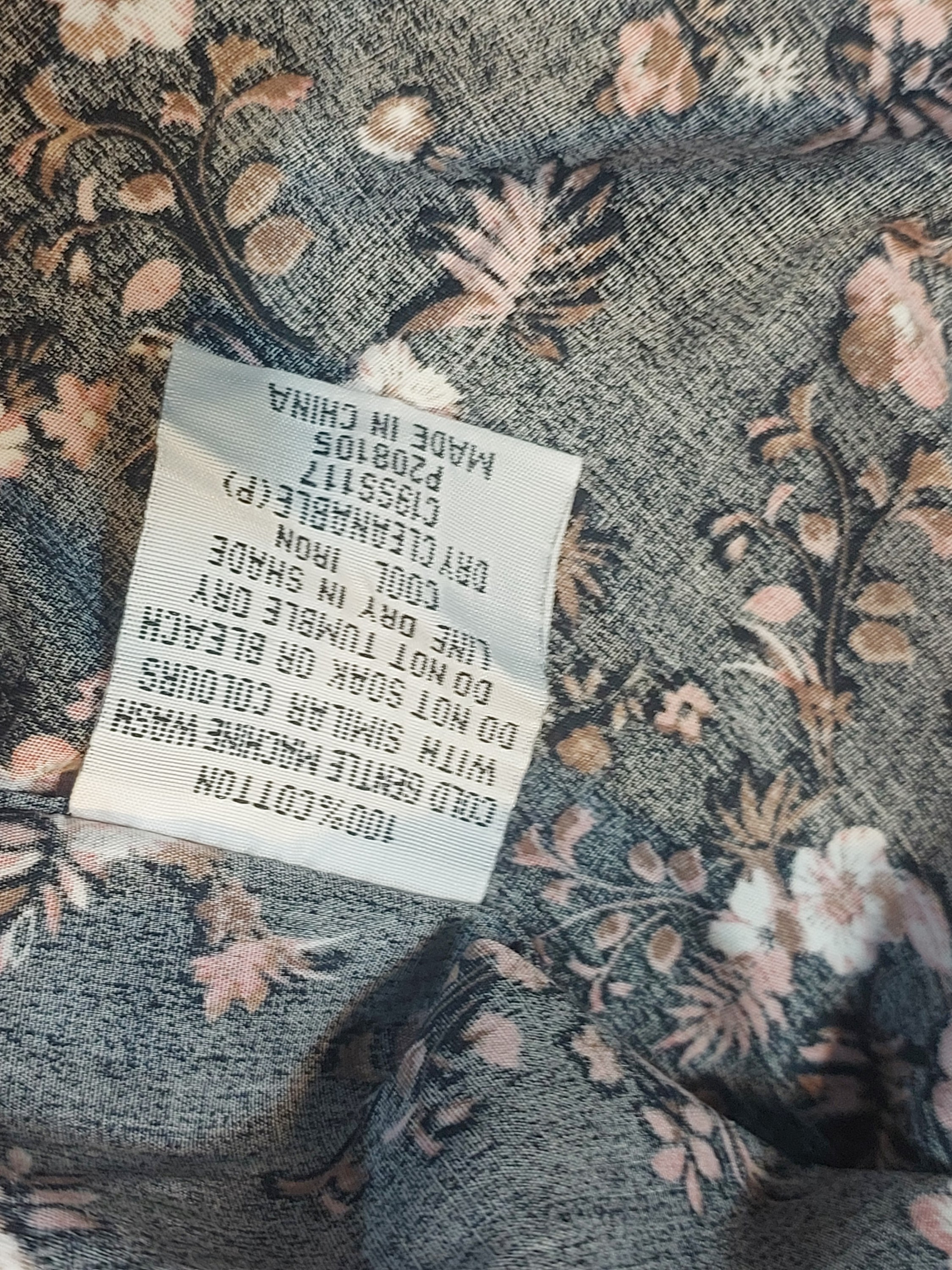 ▪️طرح: زمینه تیره با طرحهای گلدار ریز و ظریف به رنگهای کرم و صورتی ملایم.