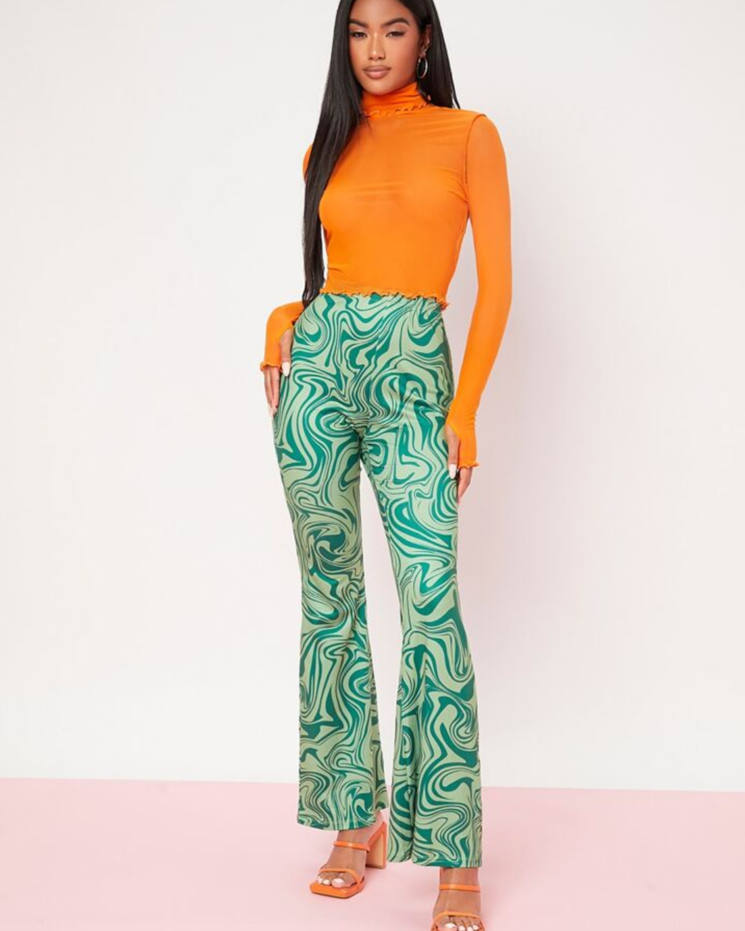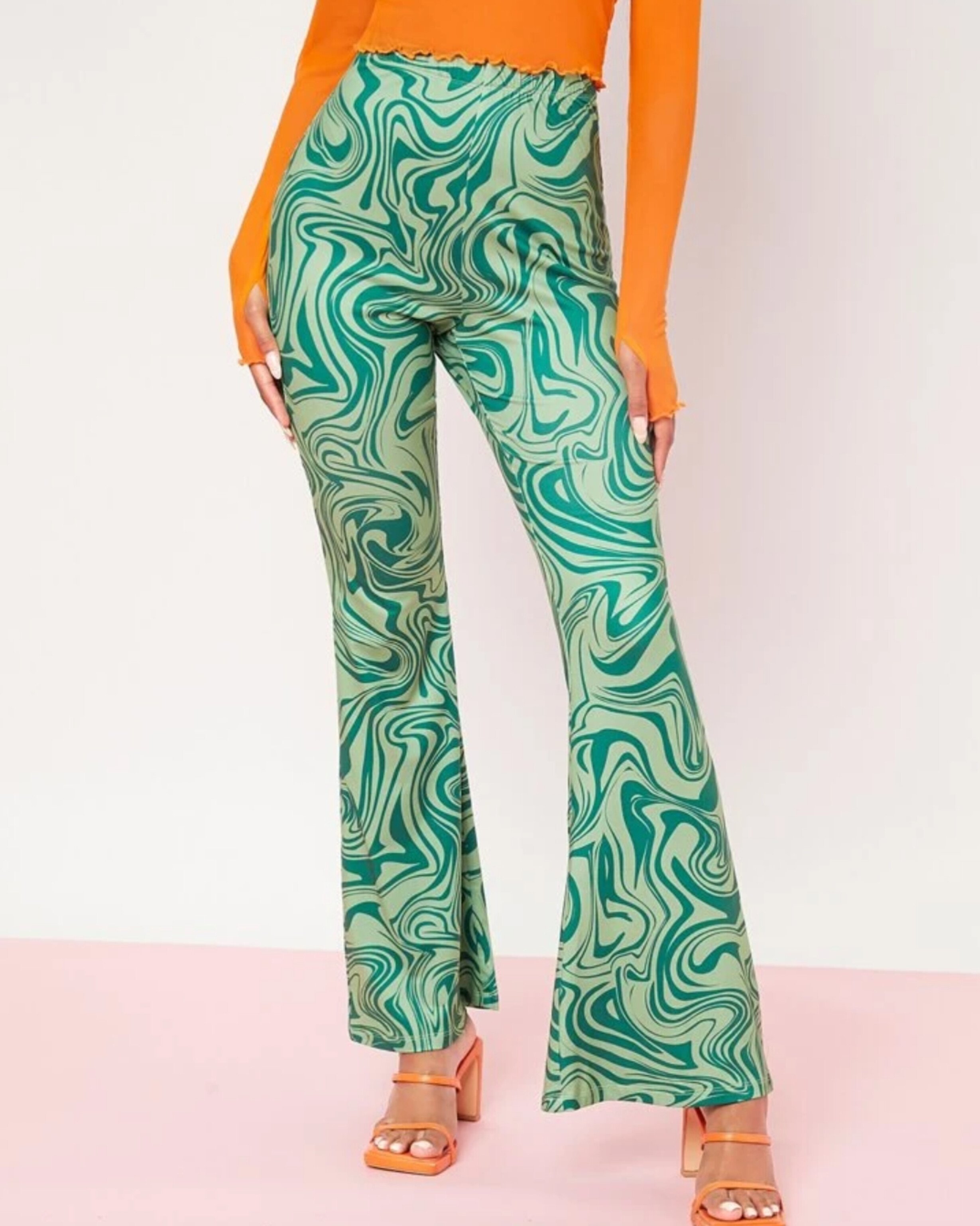 این شلوار از برند محبوب SHEIN، با طراحی خاص و طرحهای انتزاعی منحصربهفرد، انتخابی عالی برای کسانی است که میخواهند در مهمانیها و دورهمیهای دوستانه متمایز باشند. برش دمپا گشاد (Flare Leg) این شلوار باعث بلندتر دیده شدن پاها و کشیدهتر نشان دادن اندام میشود.