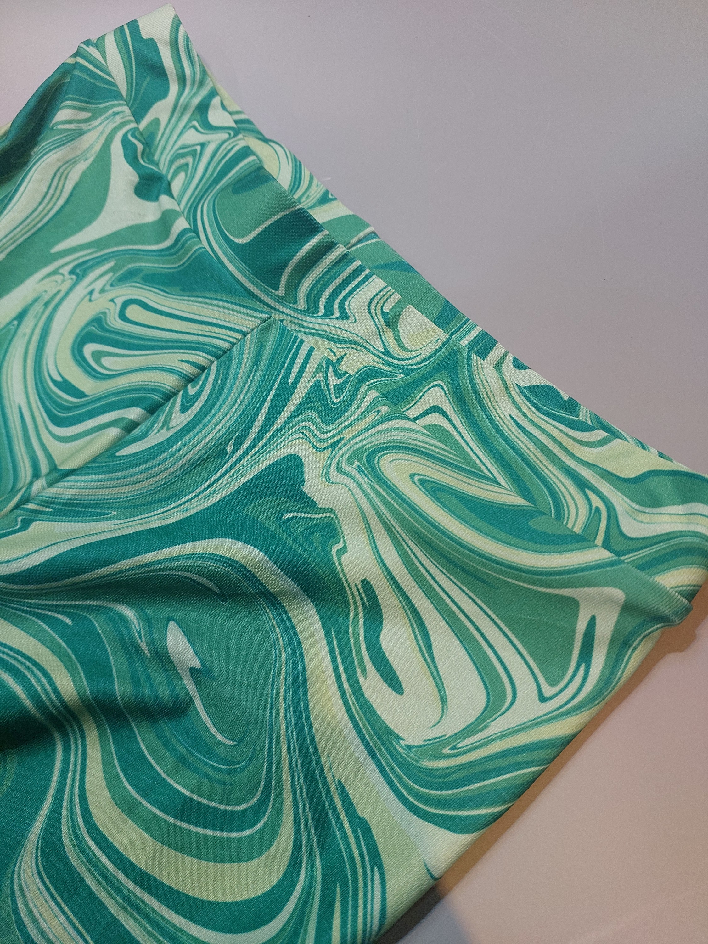طراحی و طرح: طرحدار با نقوش انتزاعی و هنری (شبیه به سنگ مرمر/Marble) در طیف رنگی سبز و ترکیبی.