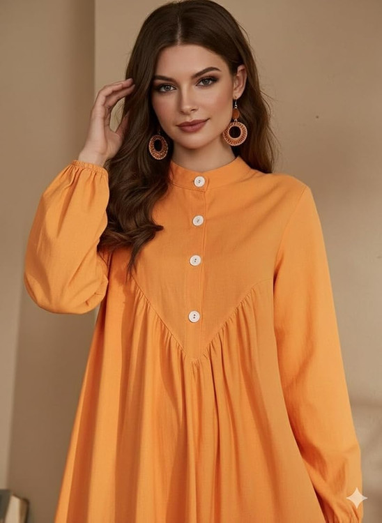 این پیراهن با طراحی آزاد (Oversize) و قد بلند، انتخابی ایدهآل برای استایلهای کژوال و روزمره است. استفاده از پارچه ۱۰۰٪ پنبهای (Cotton) باعث شده تا لباس بسیار تنفسپذیر و لطیف باشد. یقه ایستاده و دکمههای تزیینی در جلو، ظاهری شیک و در عین حال ساده به آن بخشیده است.