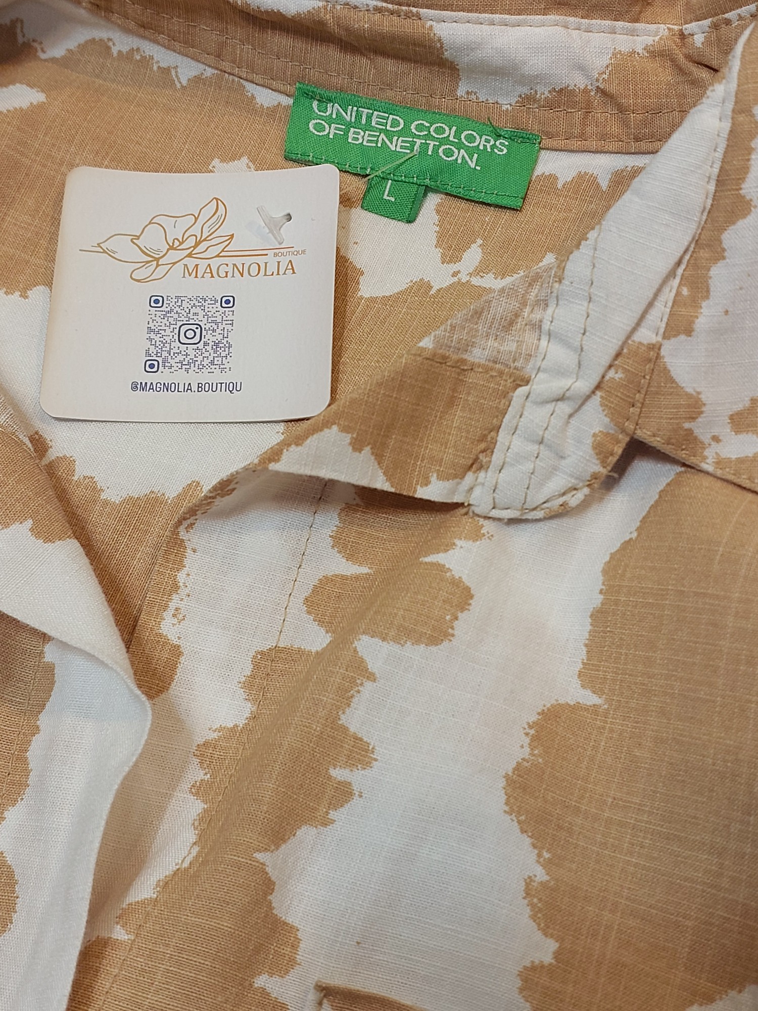 شومیز دکمه خور,طرح دار زنانه کتان از برند بنتون BENETTON
